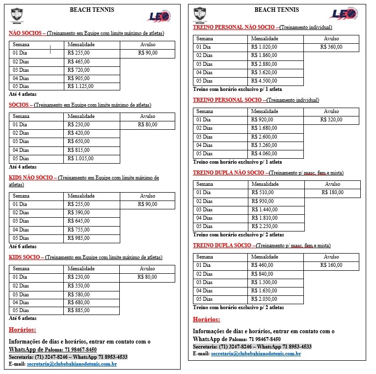 Contrato Aluno - Beach Tennis
